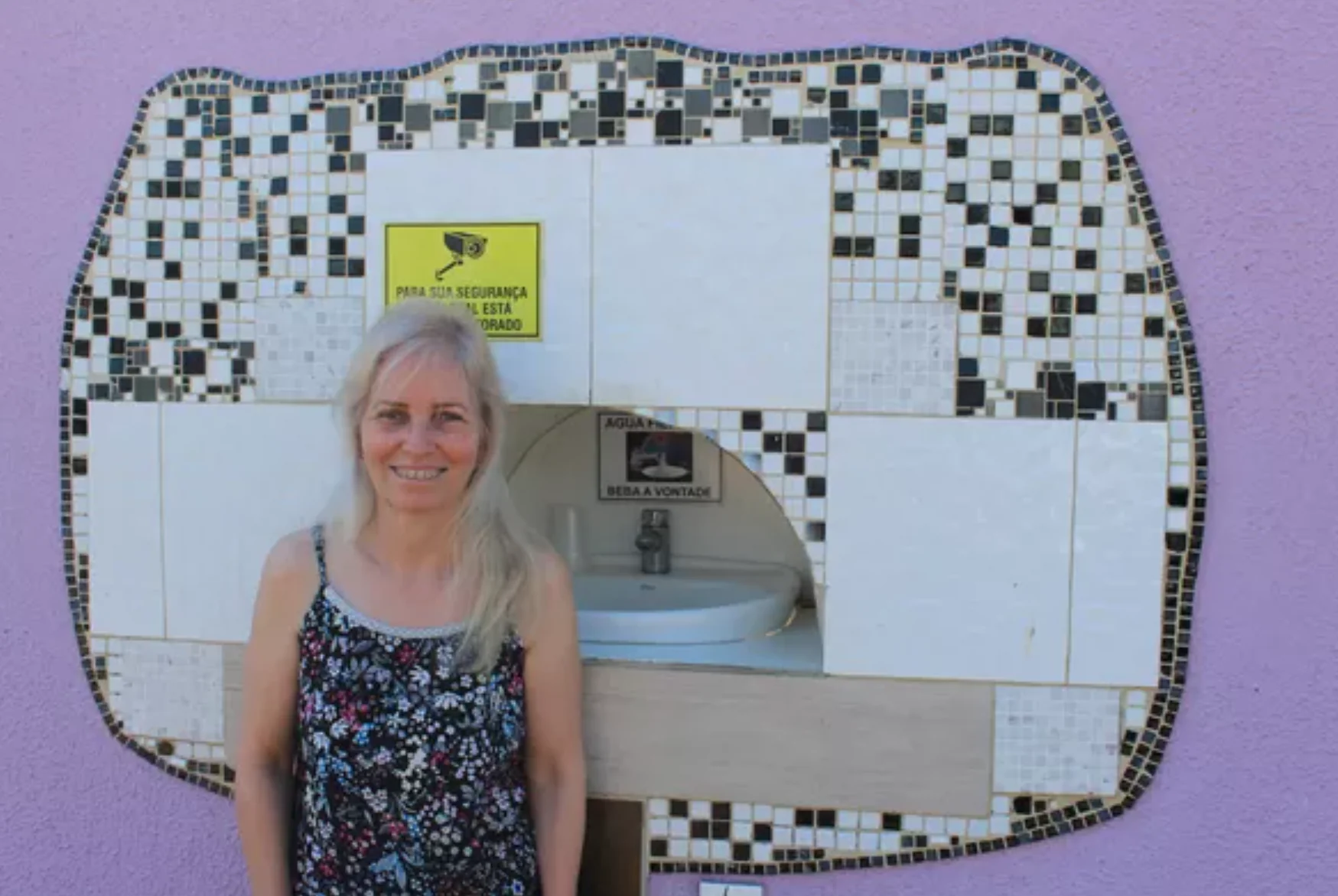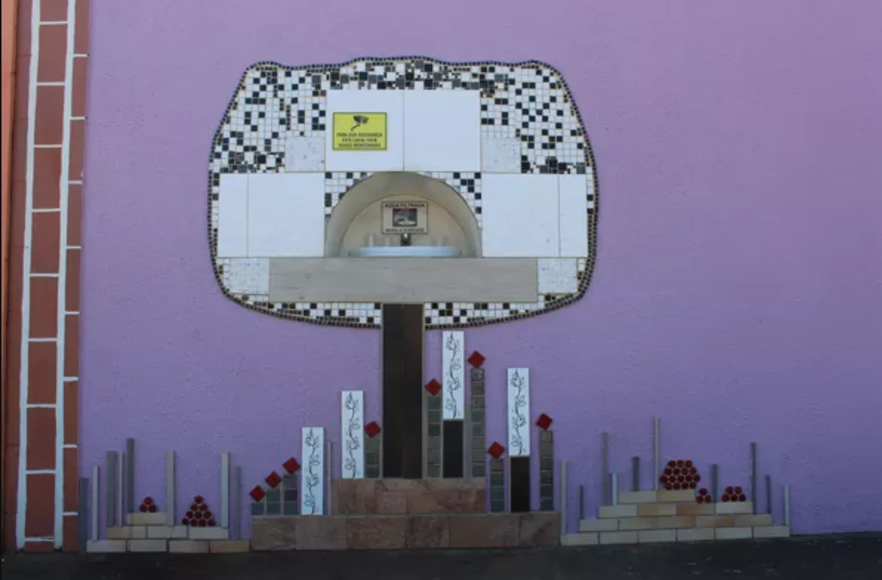 A decoração do bebedouro, feita com azulejos, foi montada pela própria Márcia. “Eu quis fazer uma arte e tinha alguns restos desse material, planejei e acabou saindo. Lembra uma tulipa”, explicou.