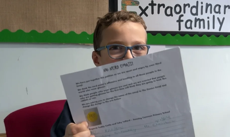 Teddy, de 10 anos, morador de Peppard, Oxfordshire, iniciou uma campanha pedindo que a Apple altere o emoji de óculos, que ele considera “ofensivo e insultante”. Segundo o garoto, a versão atual, com dentes frontais proeminentes, passa uma imagem negativa de quem usa óculos.