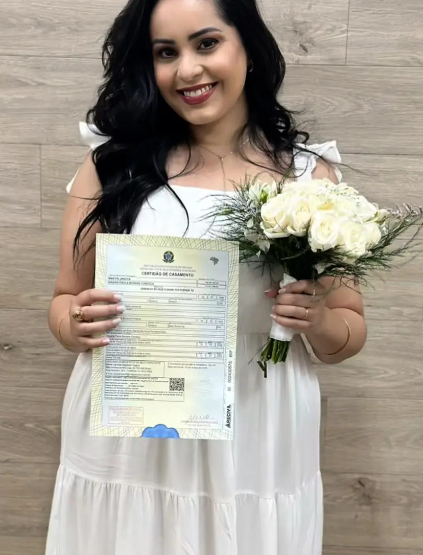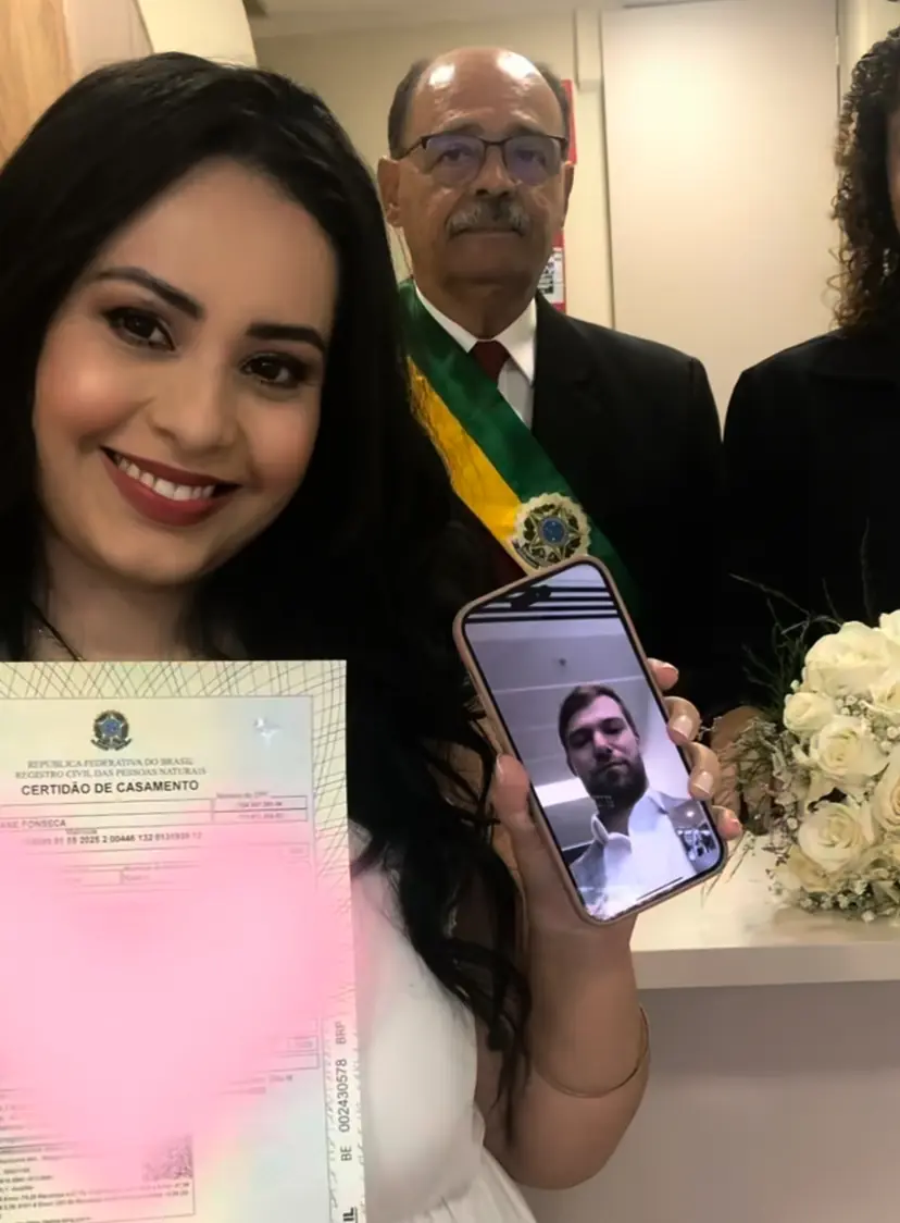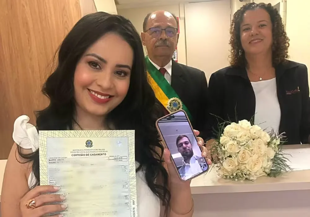 Naiane Bonane, de Belo Horizonte (MG), oficializou o casamento com o gerente de produto Martin Janota, de Praga, na República Tcheca, sem que o noivo estivesse presente. Por conta de atrasos na documentação, o visto dele expirou, e a cerimônia precisou ser realizada por procuração, com Martin participando por chamada de vídeo.