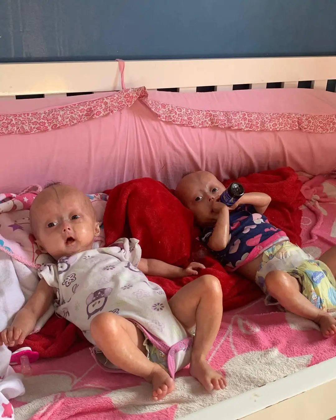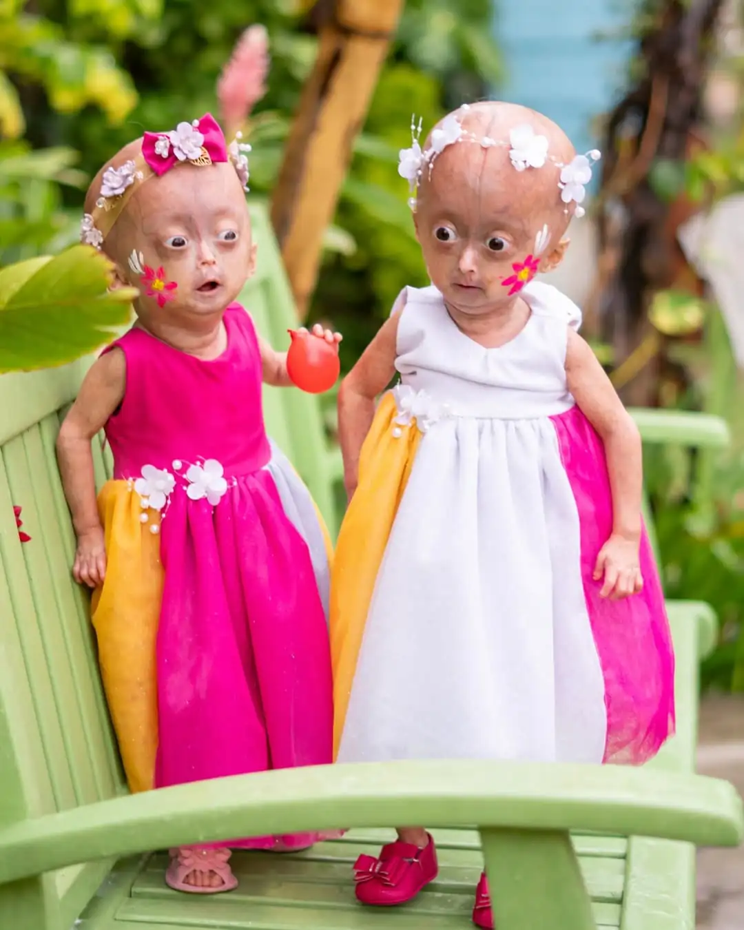 Diagnosticadas com progéria, também chamada de Síndrome de Hutchinson-Gilford, elas são as únicas gêmeas no mundo com a condição, que provoca envelhecimento precoce. Quando receberam o diagnóstico, a família tinha poucas informações sobre a doença, cuja expectativa média de vida é de 14 anos. Hoje, elas respondem bem aos tratamentos e evoluem de forma positiva, o que leva a família a não se apegar aos números.