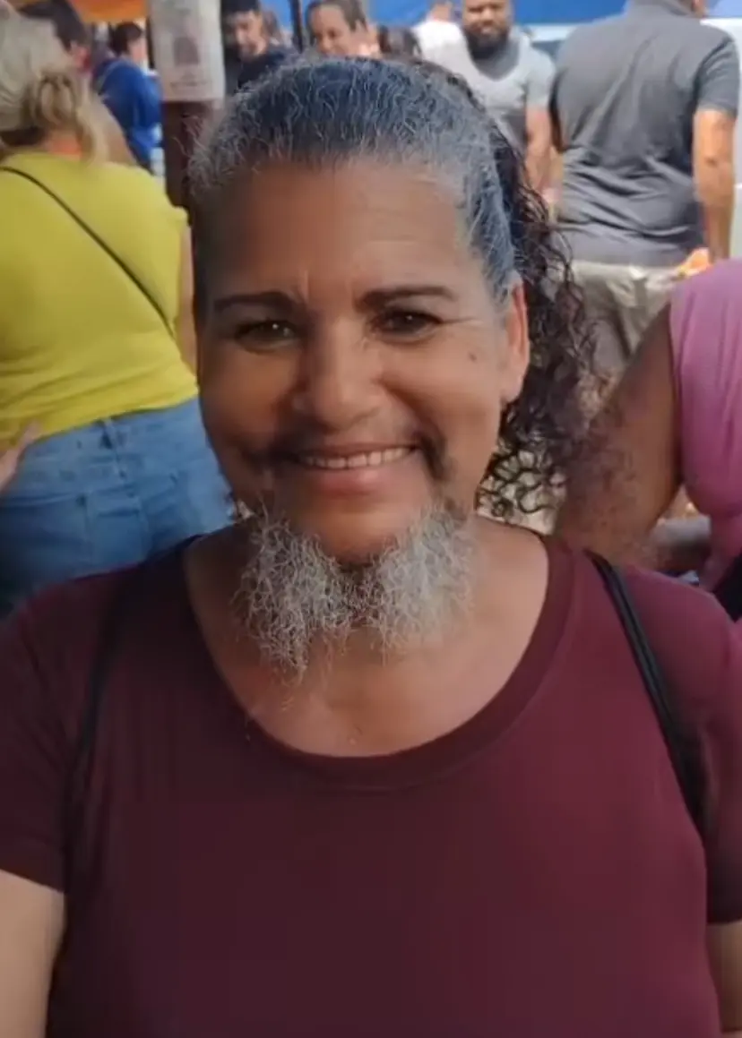 Maria da Conceição Gomes de Melo Silva, 48 anos, conhecida como “Barbudinha”, convive com o crescimento de pelos no rosto desde a adolescência, resultado de fatores hormonais e genéticos. Após anos tentando esconder a barba com depilação, ela decidiu deixá-la crescer e passou a compartilhar sua rotina nas redes sociais.
