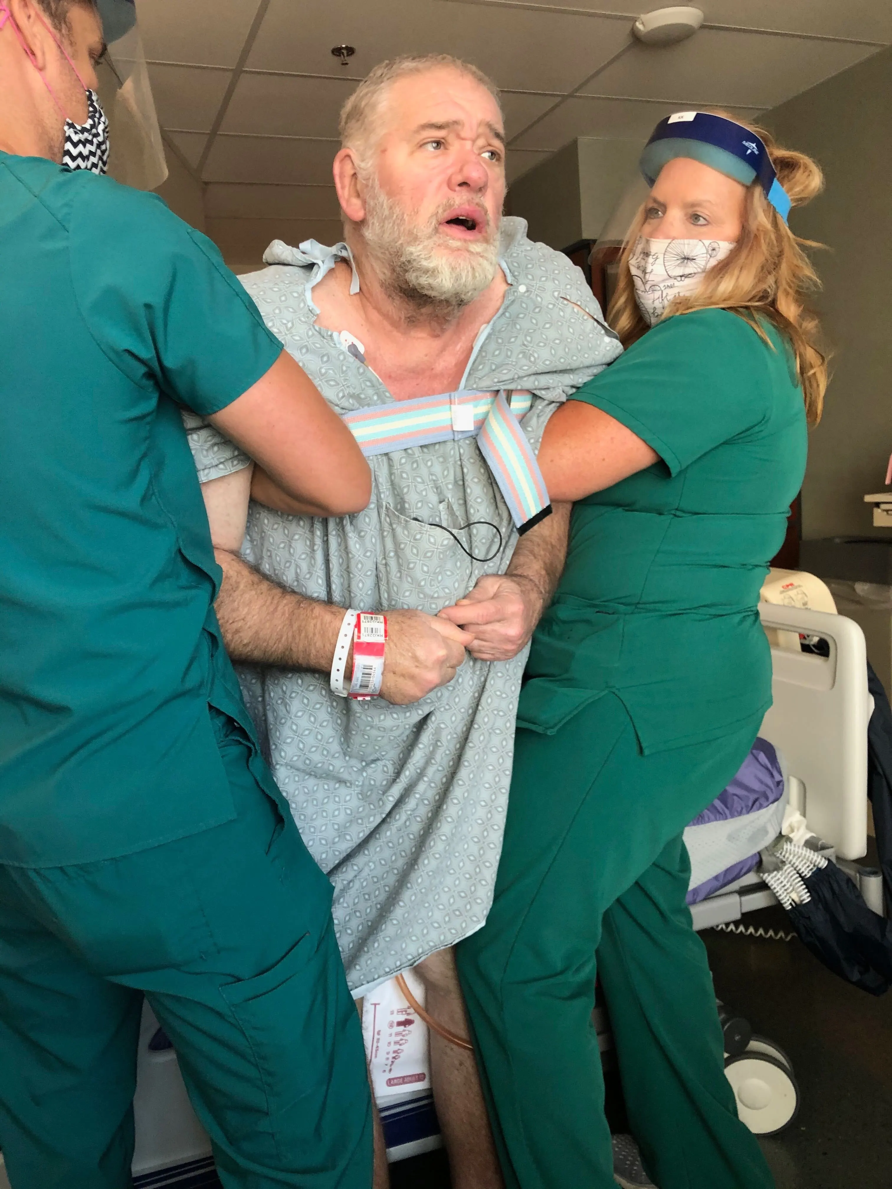“Eles ligaram para minha família e pediram que decidissem sobre me desconectar do suporte de vida. Disseram que eu seria um vegetal pelo resto da vida, que isso destruiria meu cérebro”, relatou Michael. Linda recorda a resposta que deu ao médico: “Ele disse que ficaria chocado se saísse disso, e eu respondi: ‘Você vai ficar chocado’”.