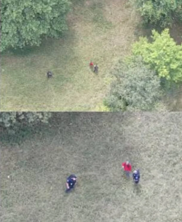 Às 11h26, equipes da EMA chegaram ao local e colocaram dois drones em operação, enquanto agentes continuavam a procura por terra. Apenas dez minutos depois, um dos drones conseguiu localizar a idosa, permitindo que os policiais chegassem rapidamente até ela.