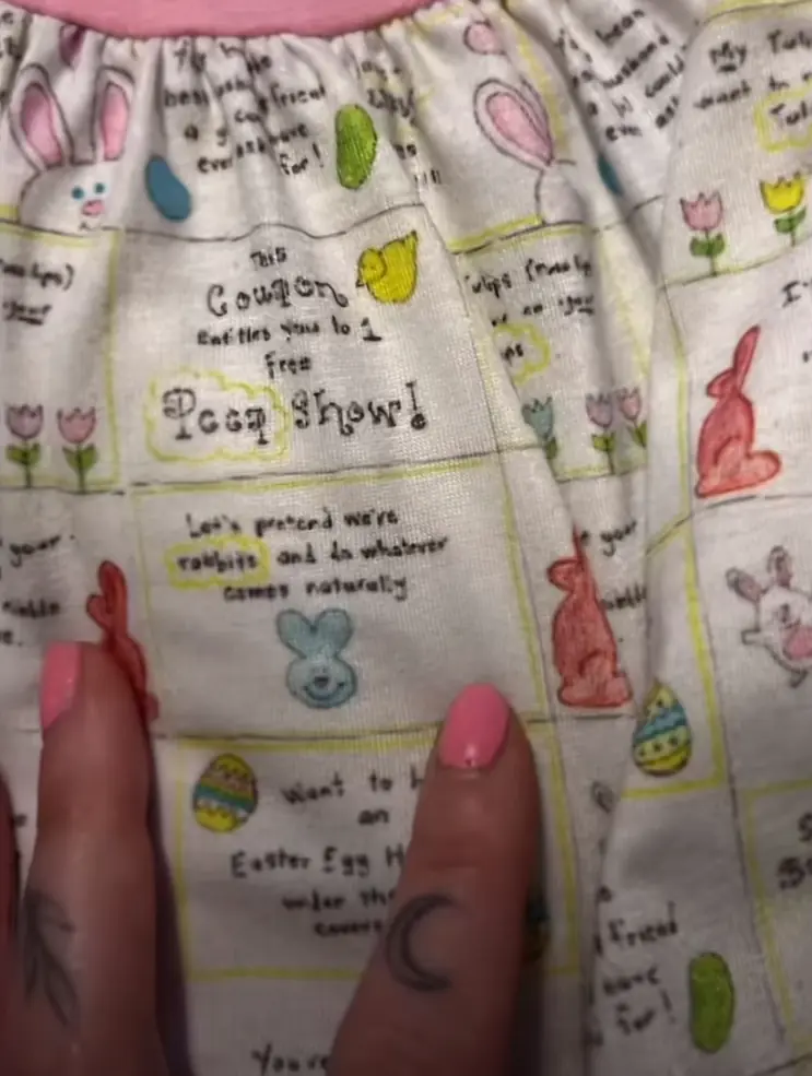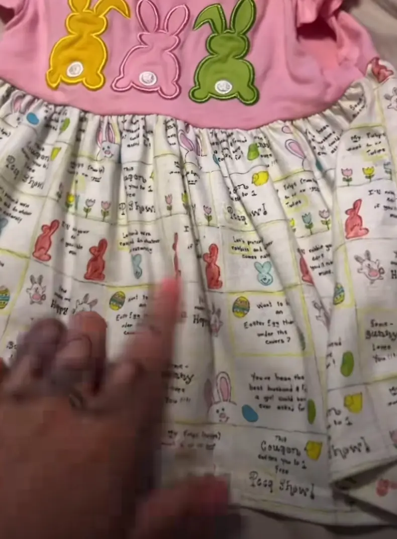 Savannah , uma mãe dos Estados Unidos, usou as redes sociais para alertar outros pais após descobrir mensagens inapropriadas em um vestido de Páscoa comprado para sua filha. O caso foi relatado no TikTok.