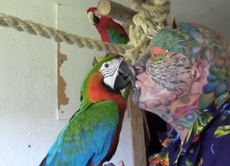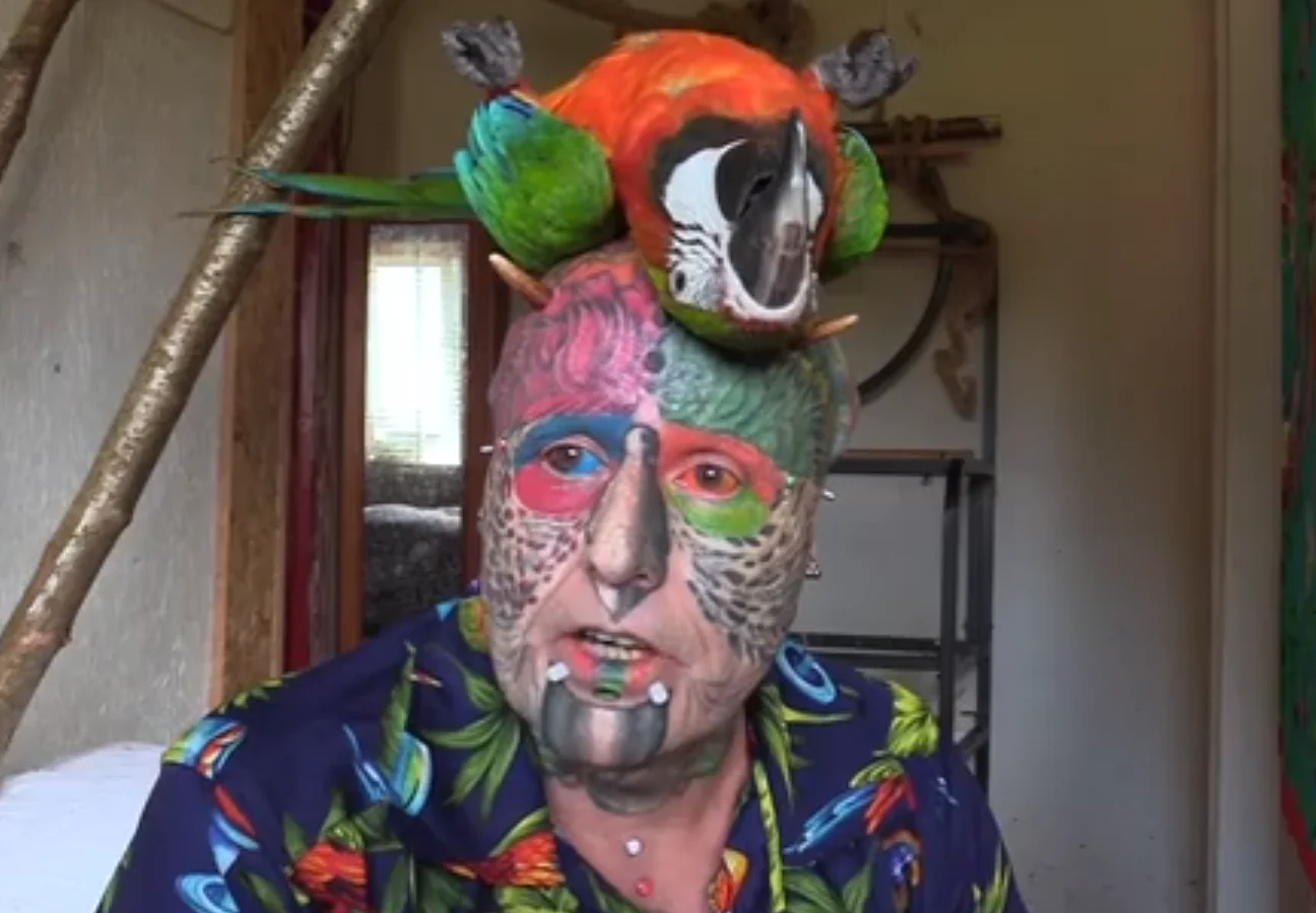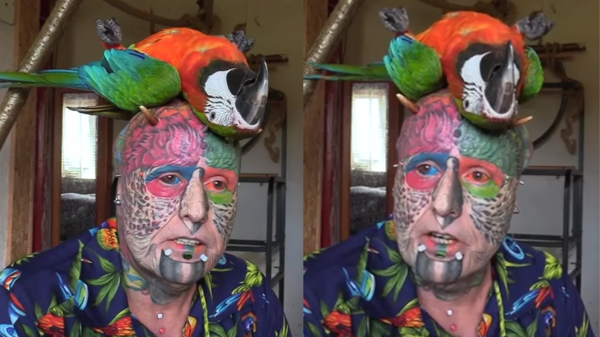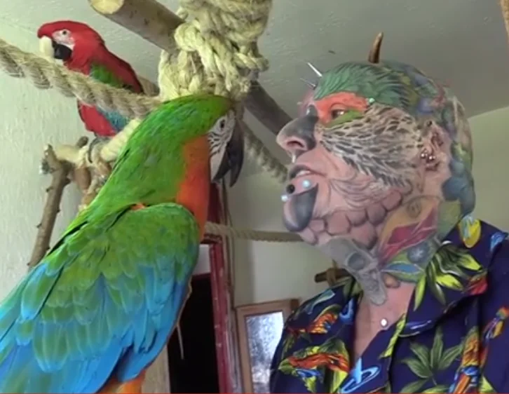 Obcecado por papagaios, britânico tira as orelhas e faz mais de 100 tatuagens para parecer uma ave