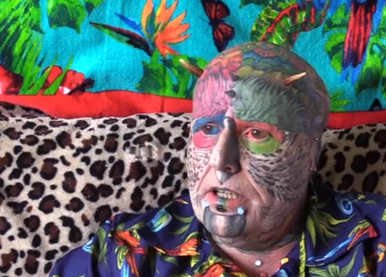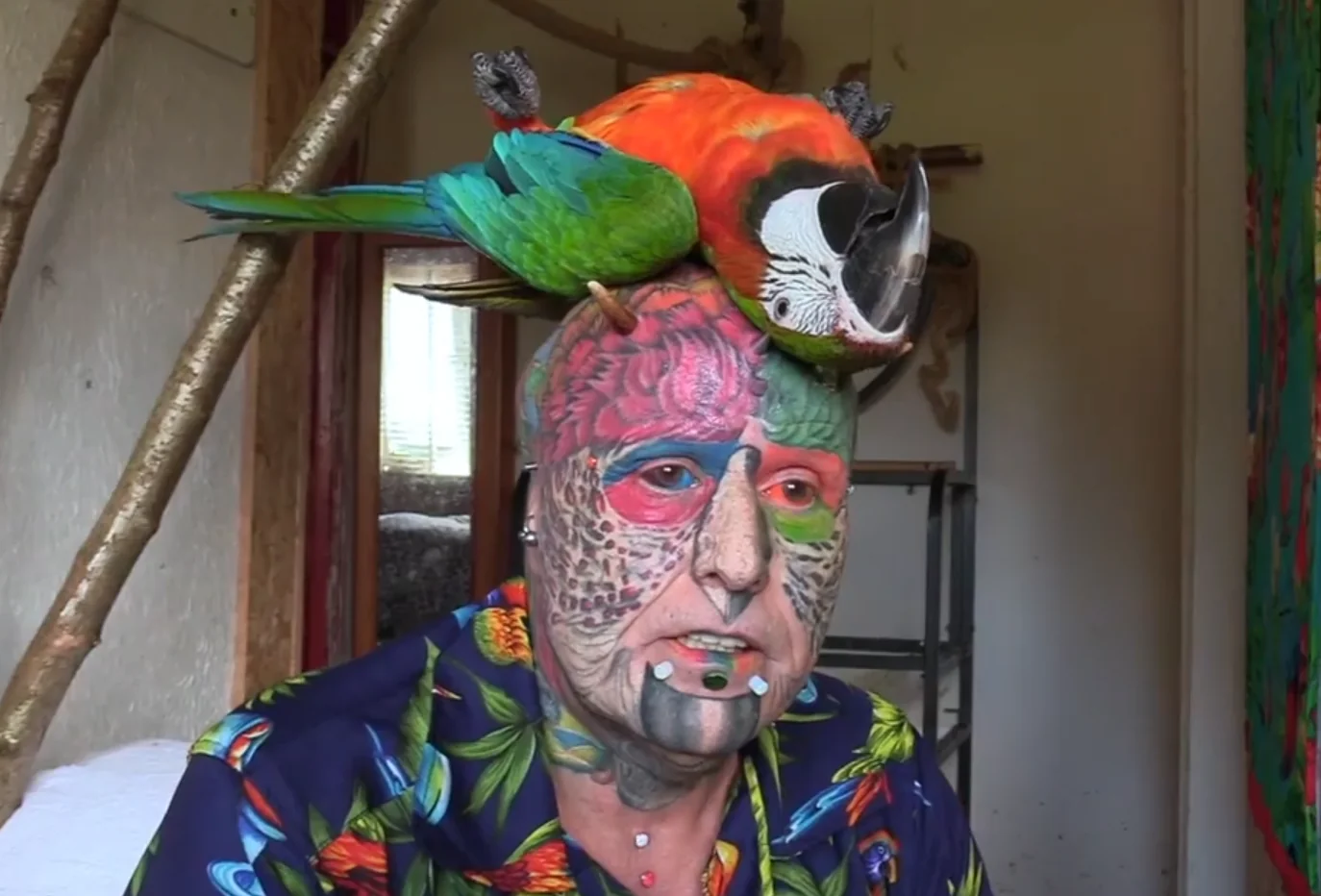Um homem de 55 anos, morador de Bristol, na Inglaterra, passou por uma série de modificações corporais extremas para realizar o sonho de se parecer com seus papagaios de estimação. Conhecido hoje como Ted Parrotman [Homem-papagaio], ele já retirou as orelhas em uma cirurgia que durou seis horas, dividiu a língua, acumulou mais de 100 tatuagens e cerca de 50 piercings espalhados pelo corpo.