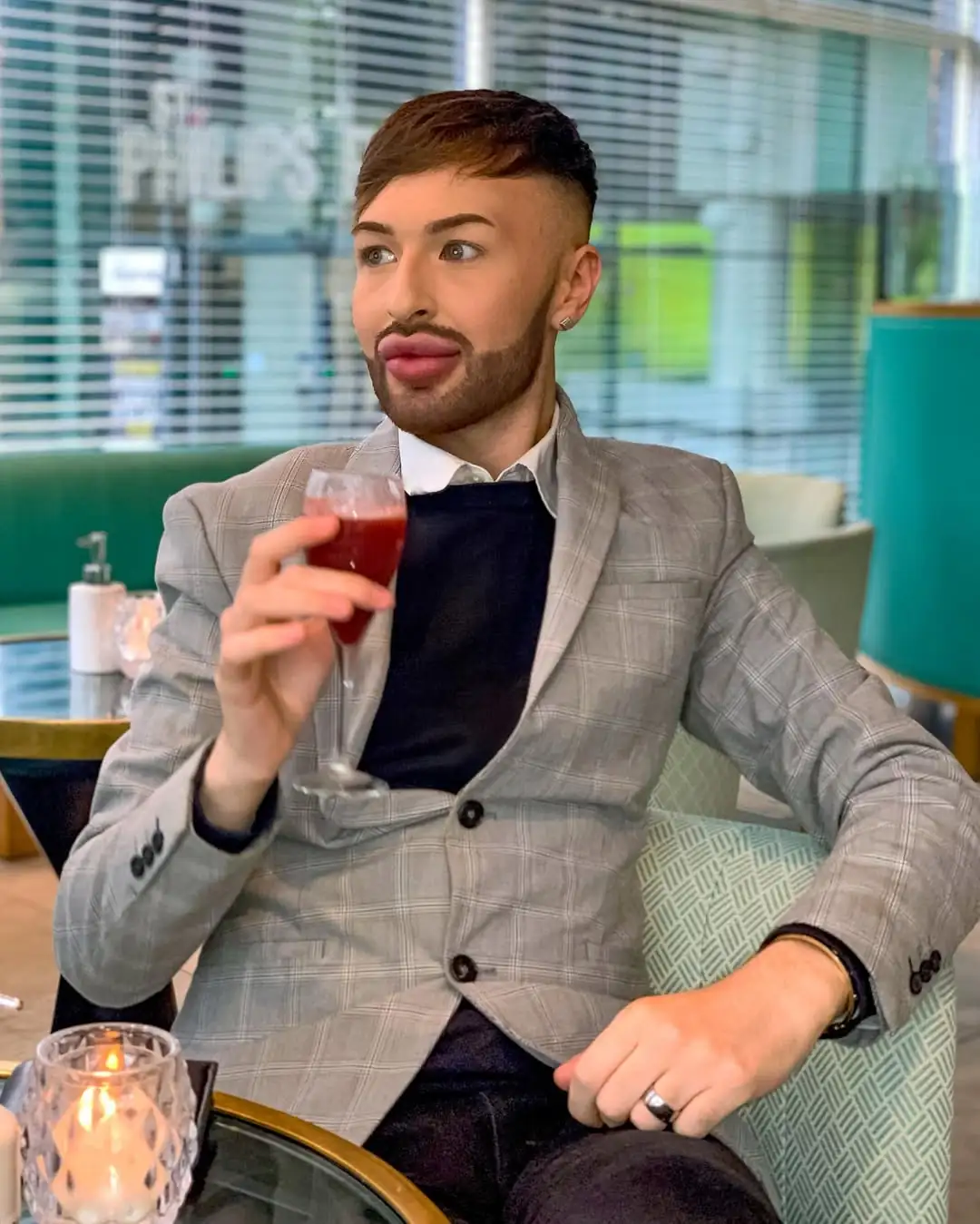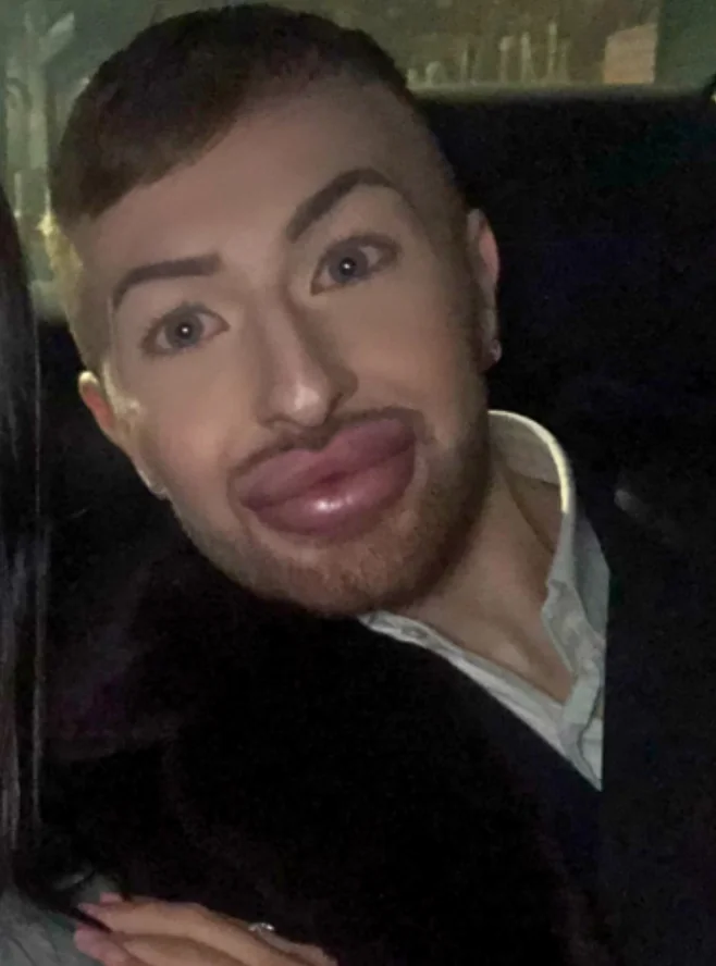 O britânico Christopher Sharratt, de 25 anos, decidiu reverter anos de procedimentos estéticos após admitir que desenvolveu um vício em preenchimentos faciais e labiais. Natural de Staffordshire, ele calcula ter gasto cerca de R$ 25 mil em aplicações antes de optar pela remoção.