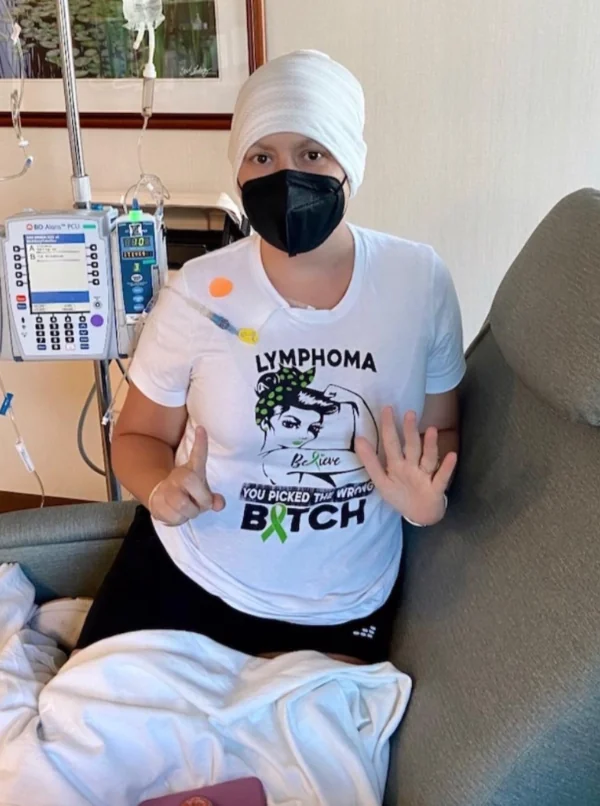 De volta aos Estados Unidos, exames apontaram um linfoma folicular grau 3B, uma forma rara e agressiva de linfoma não Hodgkin. O tumor já havia se espalhado e atingia uma massa no peito do tamanho de uma toranja, com 11,6 por 8,3 centímetros. “Sem tratamento, eu teria morrido em poucos meses. Comecei a quimioterapia apenas 12 dias após o diagnóstico, e isso salvou minha vida”, afirmou.
