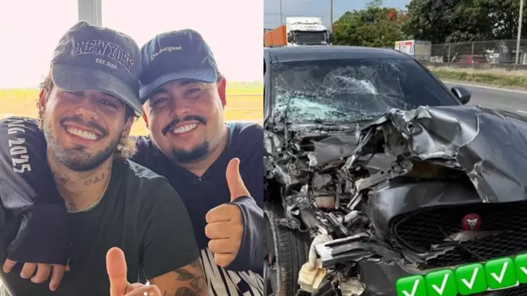 João Victor, assessor e amigo próximo do cantor Zé Felipe, passou por um acidente de trânsito na madrugada desta sexta-feira (17/10), em Goiânia (GO). Ele compartilhou imagens nas redes sociais mostrando a frente de seu carro completamente danificada, mas garantiu que está bem e agradeceu por ter saído ileso da situação.