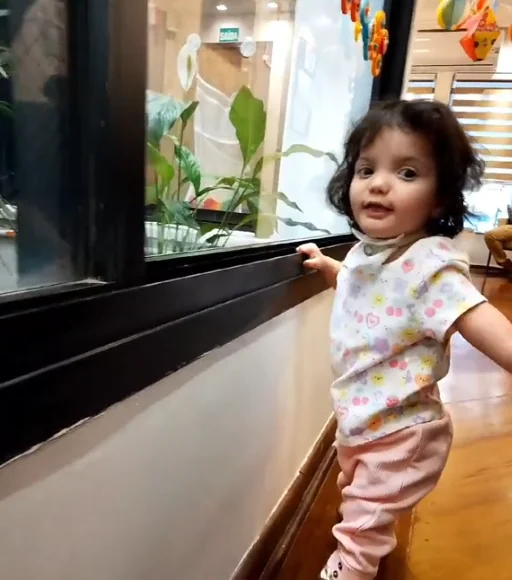 A rotina inclui fisioterapia, terapia ocupacional, fonoaudiologia e acompanhamento com diversos especialistas, entre eles nutróloga, otorrinolaringologista e geneticista. Em casa, Daniella estimula a filha com brincadeiras, músicas e atividades para fortalecer a coordenação. “Ela adora música, então colocamos bastante música para ela! Eu a seguro de leve (porque a Marina ainda não consegue ficar totalmente sem apoio) e é tudo que ela precisa para começar a dançar!”, contou a mãe.