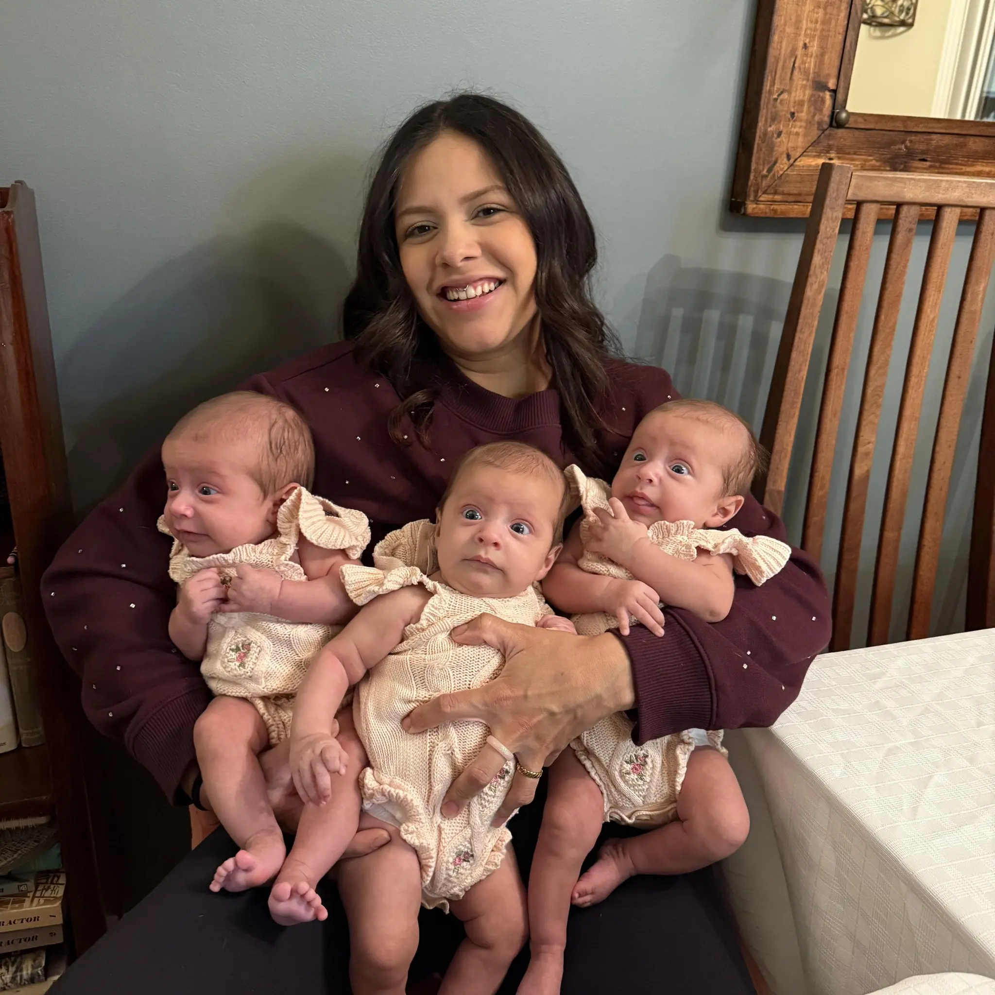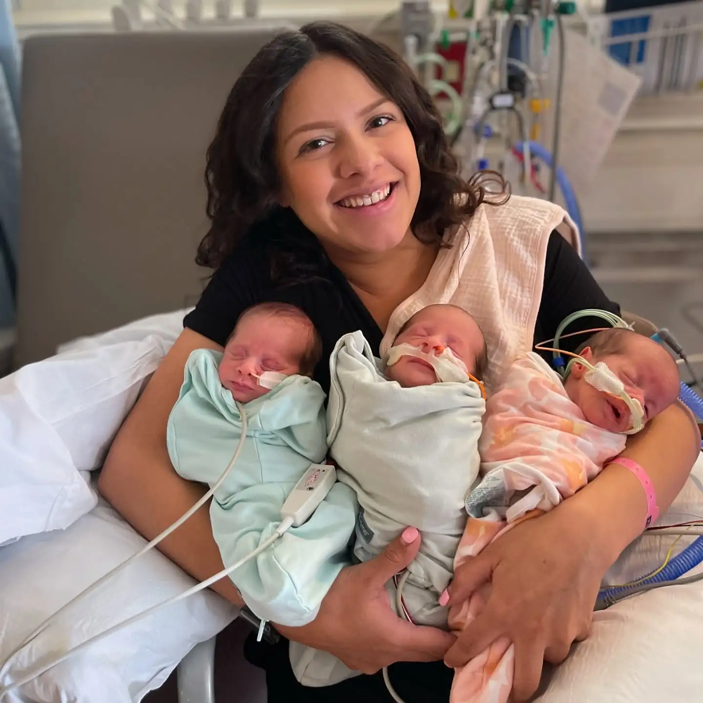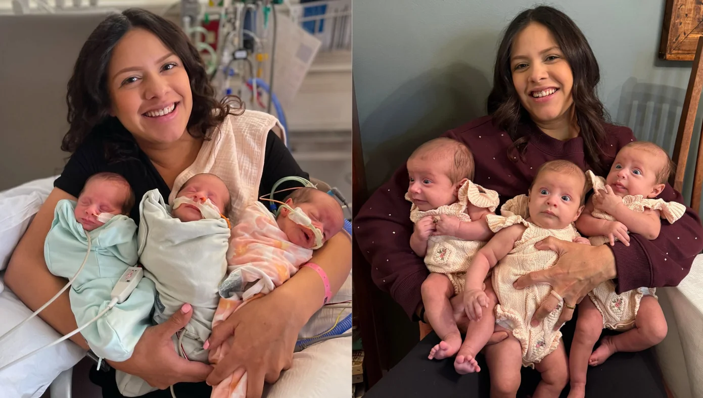 As trigêmeas foram levadas diretamente à UTI neonatal, e a mãe pôde vê-las apenas por alguns instantes. “Não foi como um parto normal, em que você pode ver ou tocar seu bebê. Felizmente, estavam saudáveis, apenas prematuras”, contou.