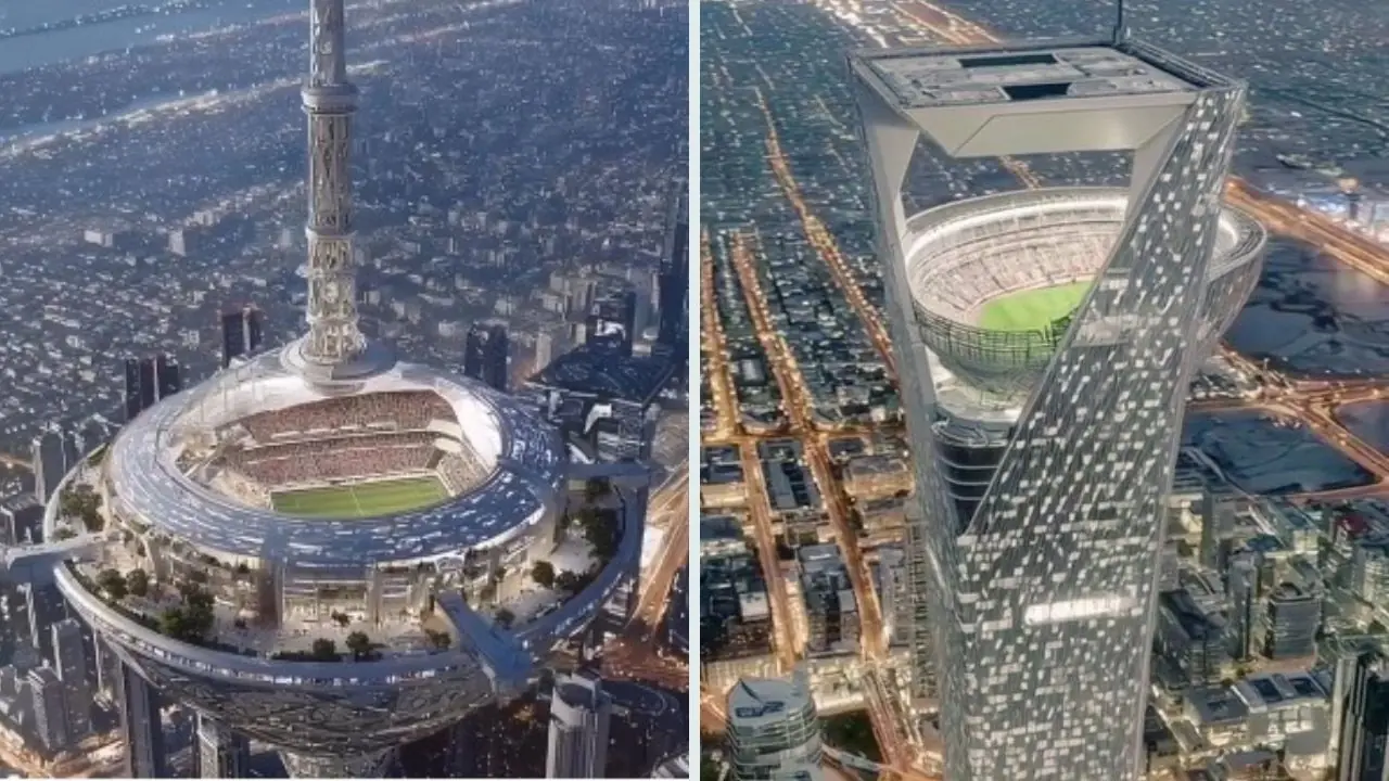 Uma prévia visual do estádio, gerada por inteligência artificial, foi divulgada nas redes sociais e reproduzida pelo jornal britânico The Sun. O vídeo mostra o estádio no topo de um arranha-céu, mas a autenticidade da informação ainda não foi confirmada oficialmente pelo Comitê Organizador da Copa do Mundo.