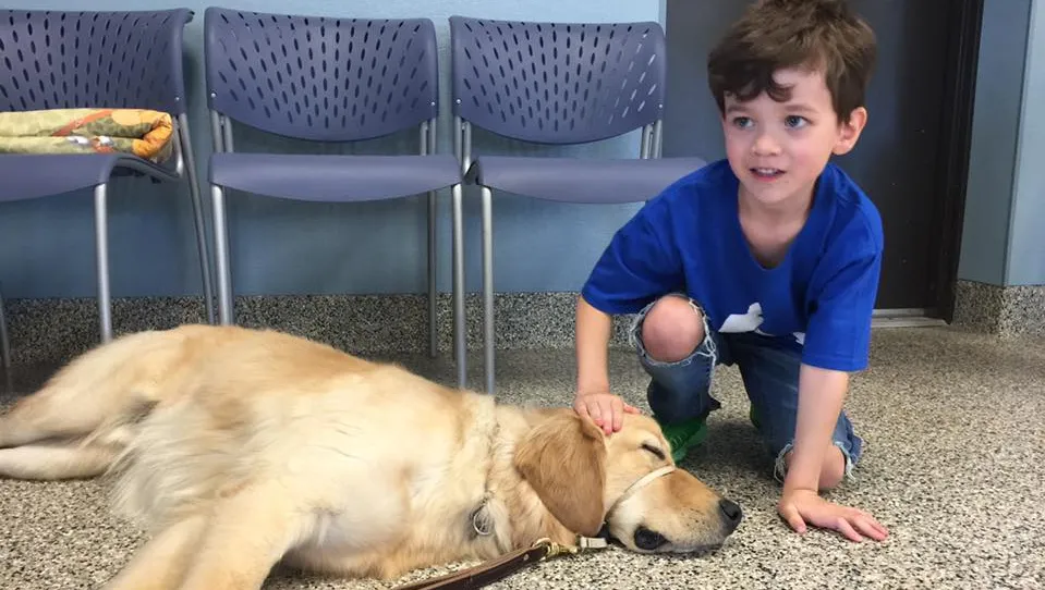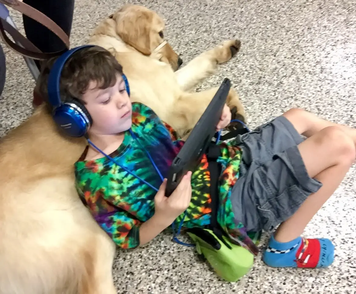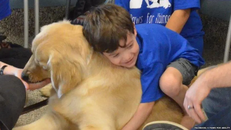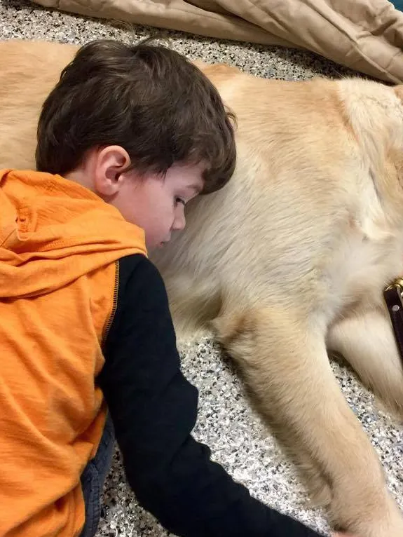 Mãe desaba ao ver filho autista de 5 anos abraçando cão de serviço pela primeira vez