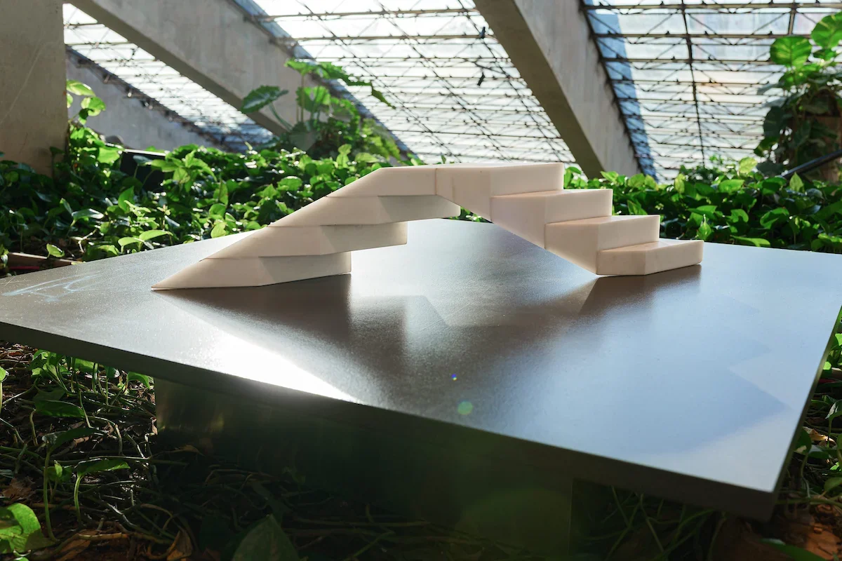 Complementarmente, uma versão maior de Homenagem a Brancusi está instalada na Esplanada da Faculdade de Medicina de Bordeaux, na França. A mostra em Brasília apresenta uma versão reduzida dessa escultura monumental, além de outras peças de menor escala, todas seguindo a mesma lógica estrutural.