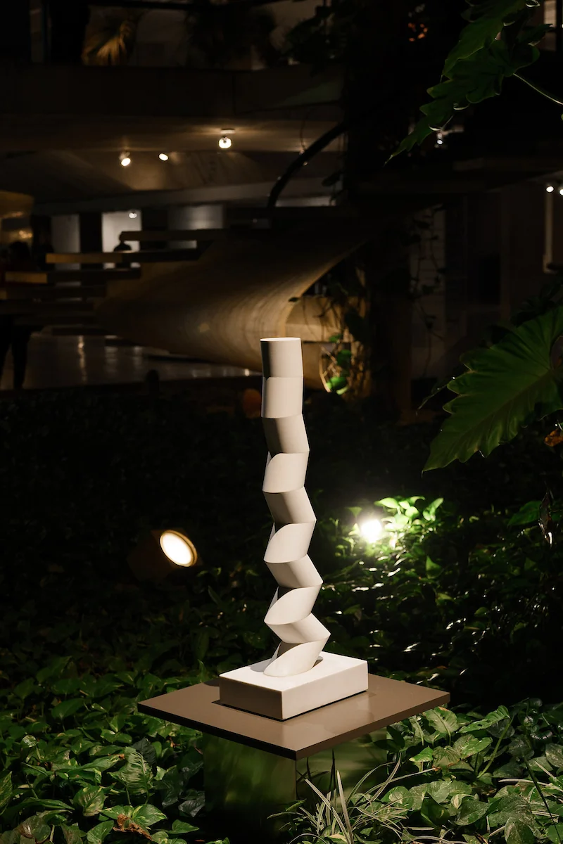 O percurso convida cada visitante a circular entre obras que exploram luz, matéria e ritmo, abertas a observação e contemplação. Volumes diversos compõem um espaço de pausa e descoberta, transformando o foyer em um ambiente de diálogo entre arte e espectador.