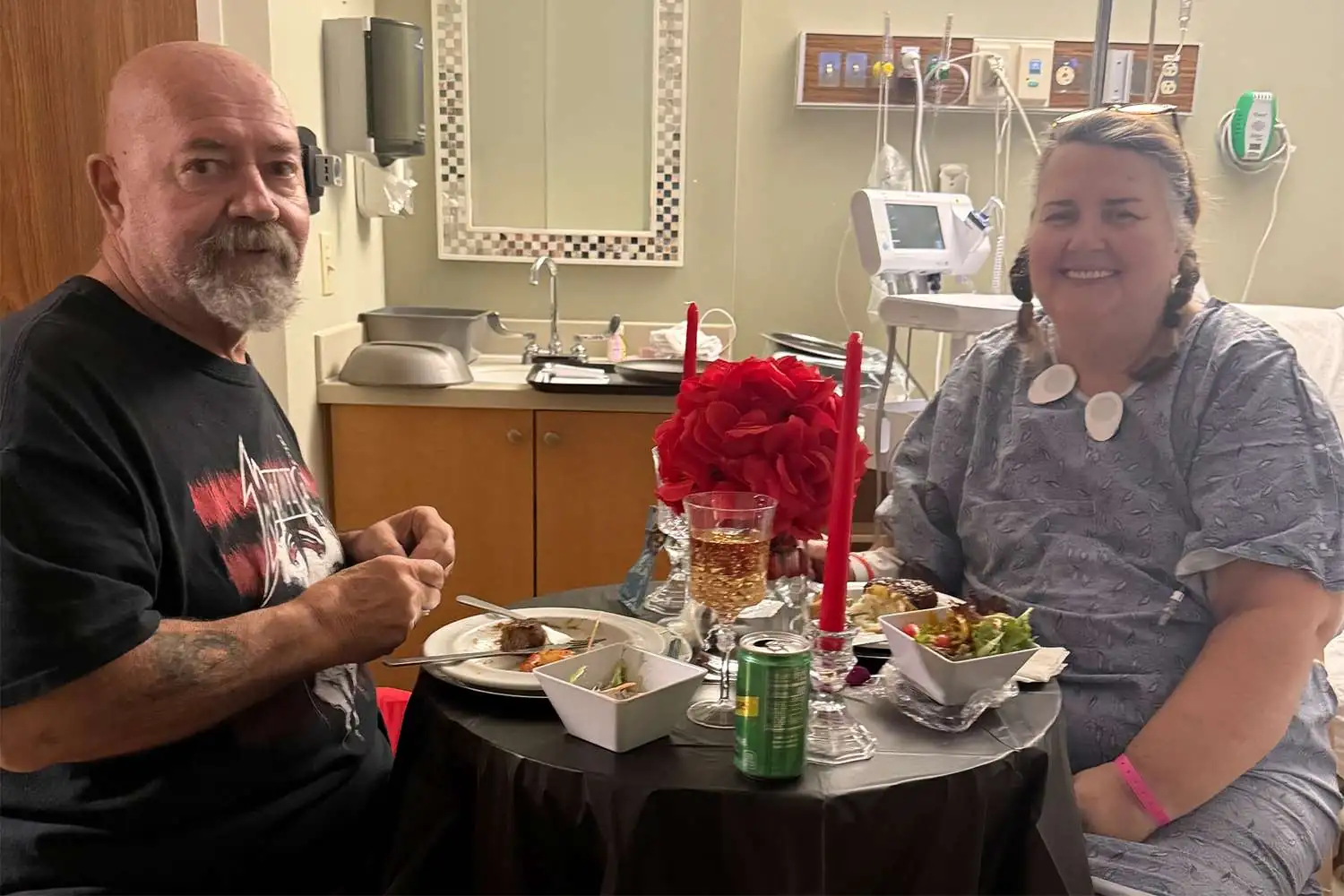 Equipe de hospital organiza jantar de aniversário à beira do leito para paciente e marido