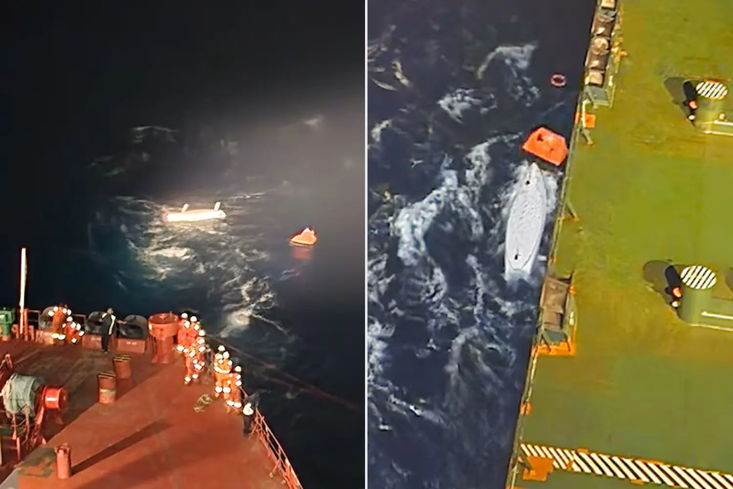 Resgate noturno do remador belga Benoit Bourguet por tripulação do navio-tanque Horten após seu barco virar no Atlântico. (Foto: Instagram)