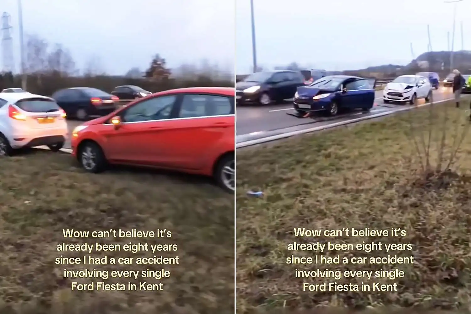 Um vídeo antigo de um acidente automobilístico inusitado voltou a viralizar no TikTok e tem atraído a atenção de milhões de pessoas. Nas imagens, seis veículos do mesmo modelo — o Ford Fiesta — aparecem enfileirados após um engavetamento em Kent, U.K., que ocorreu há oito anos. A precisão do alinhamento dos carros despertou espanto, dando ao caso uma aura quase inacreditável.