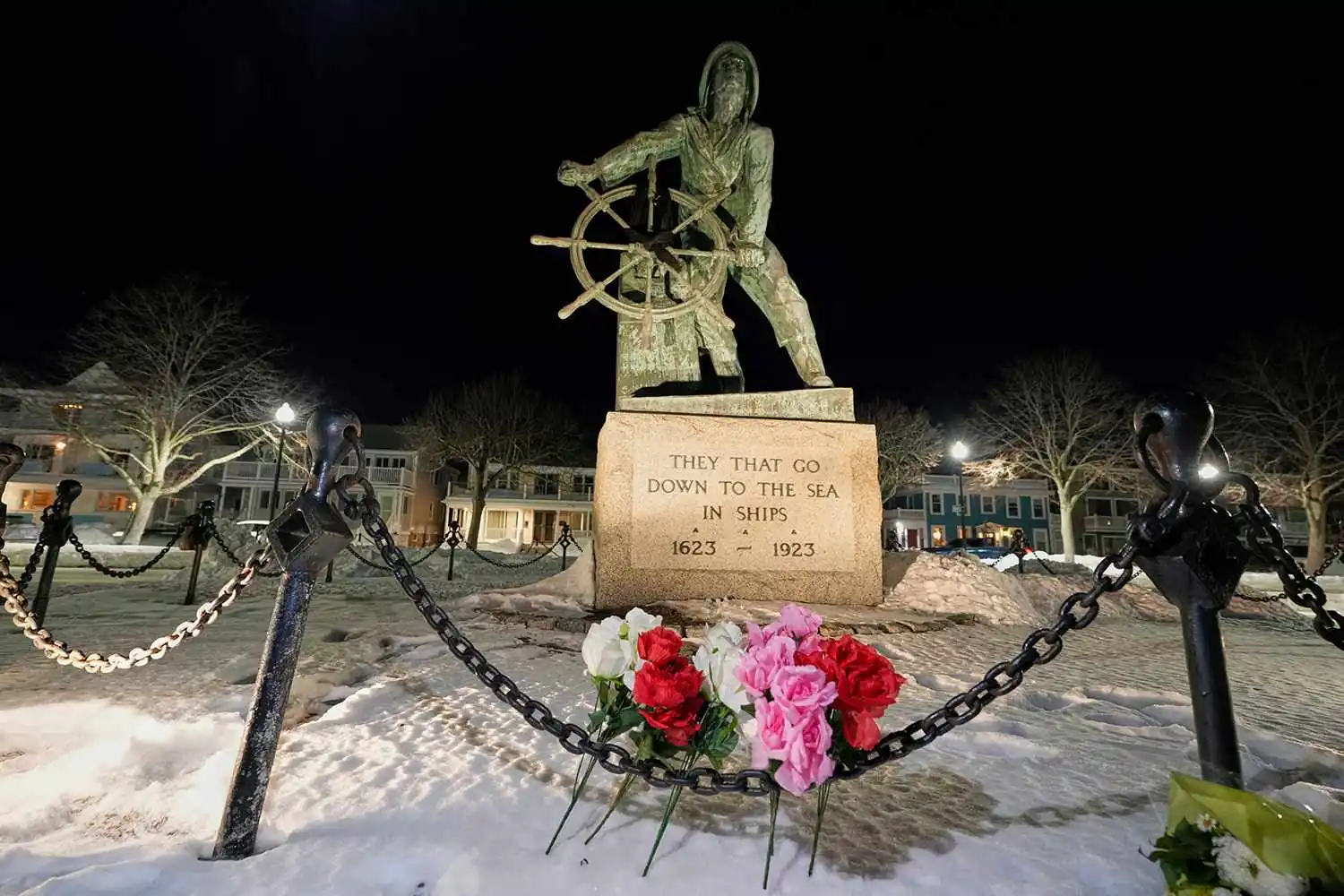 Estátua em Gloucester presta homenagem aos pescadores após achado de corpo da Lily Jean (Foto: Instagram)