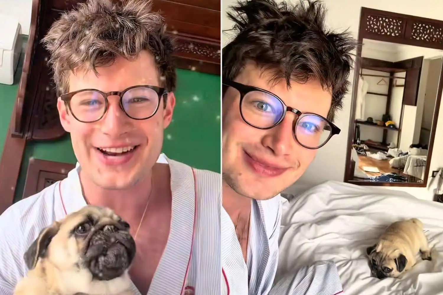 Ben Jenkins e o pug Croissant em estadia forçada no Cairo (Foto: Instagram)