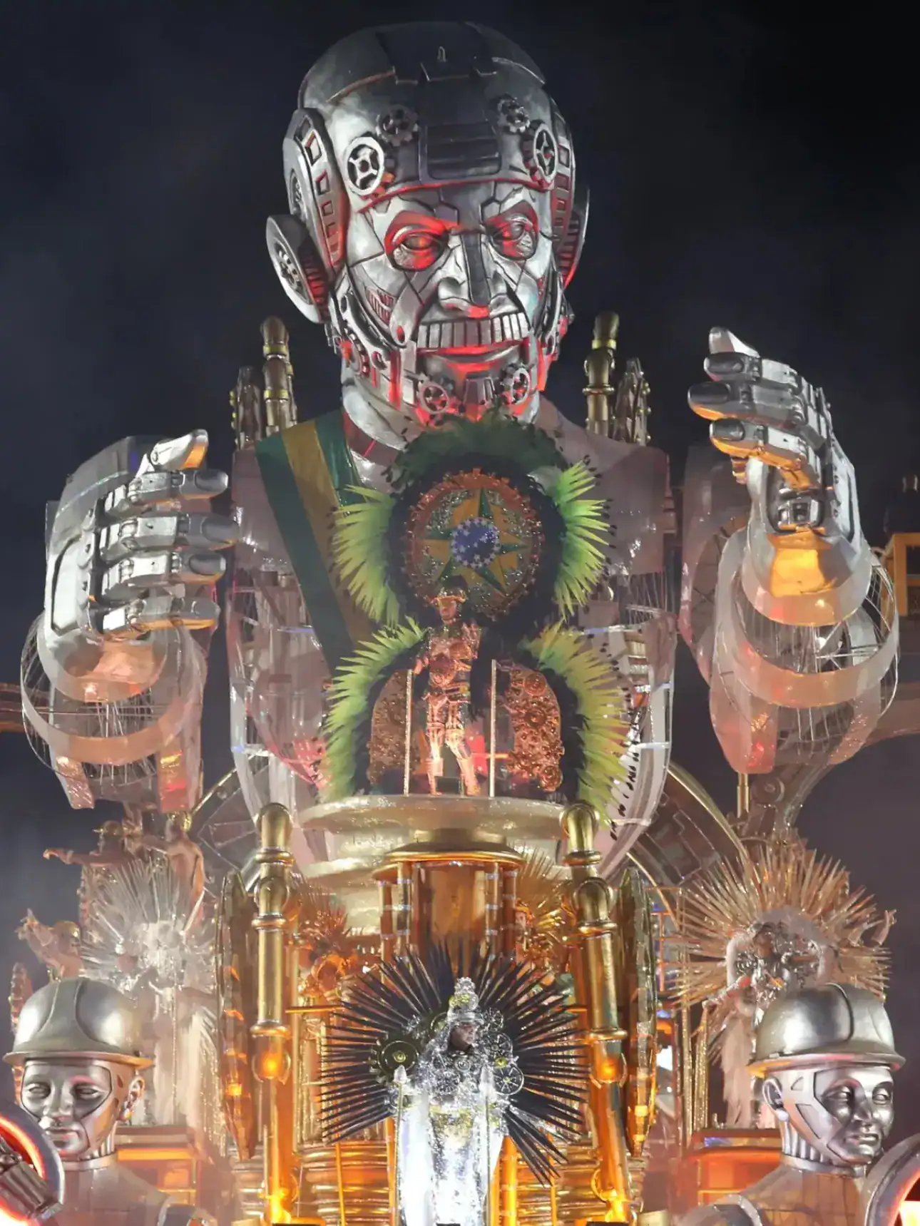 Entre os quadros apresentados, a comissão de frente encenou a rampa do Palácio do Planalto, evocando a cerimônia de posse presidencial. A coreografia também contou com personagens que retrataram figuras públicas como o ministro do Supremo Tribunal Federal Alexandre de Moraes e os ex-presidentes Dilma Rousseff, Michel Temer e Jair Bolsonaro.